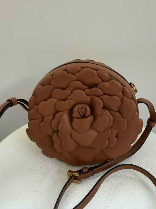 Valentino Garavani Rose Leather Crossbody Bag in Tan
