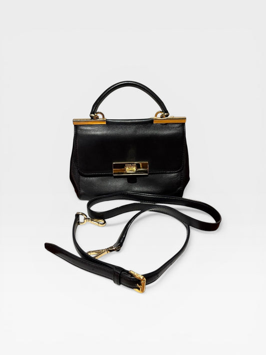 Michael Kors Manhattan Small Top Handle Bag – Black Leather with Gold Hardware