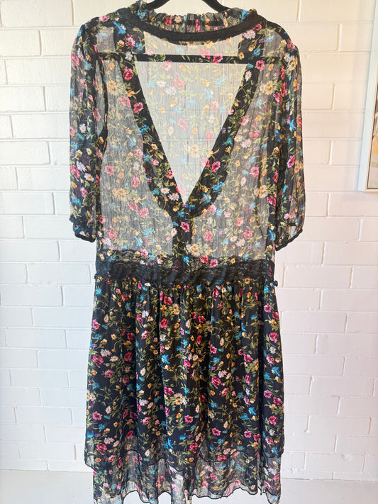 Miu Miu Sheer Black Floral Midi Dress EU 36 Long Sleeve Lace Trim