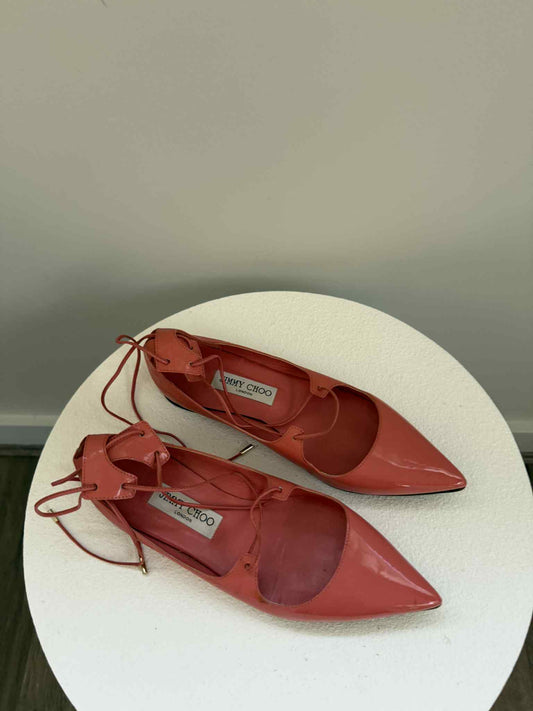 Jimmy Choo Patent Lace-Up Flats Coral- Size 38