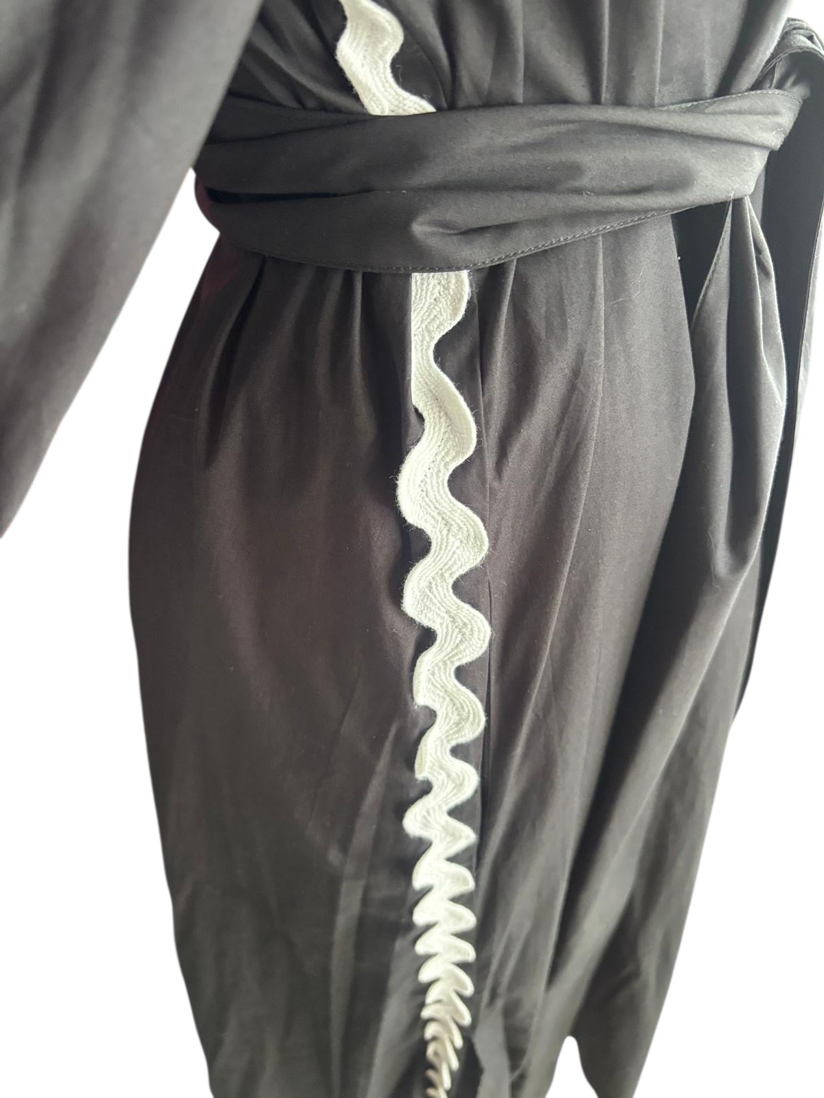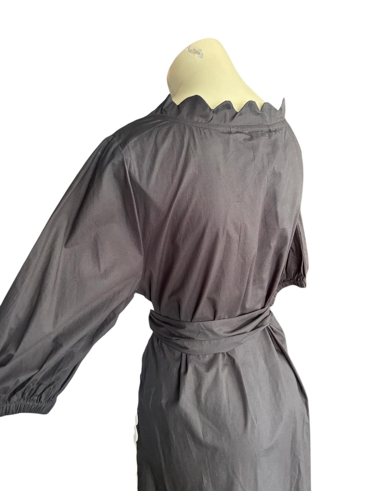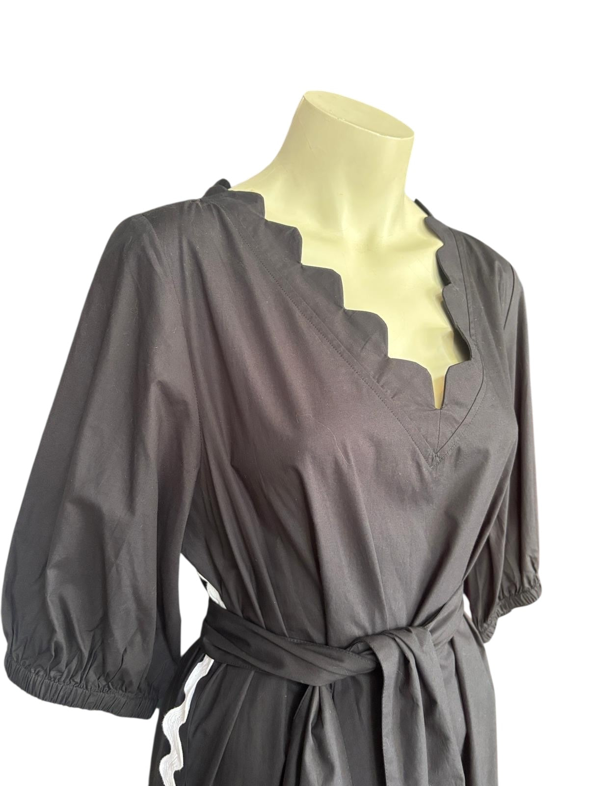 Binny Black Midi Dress | Scalloped Neckline | Cotton Belted Dress- 14