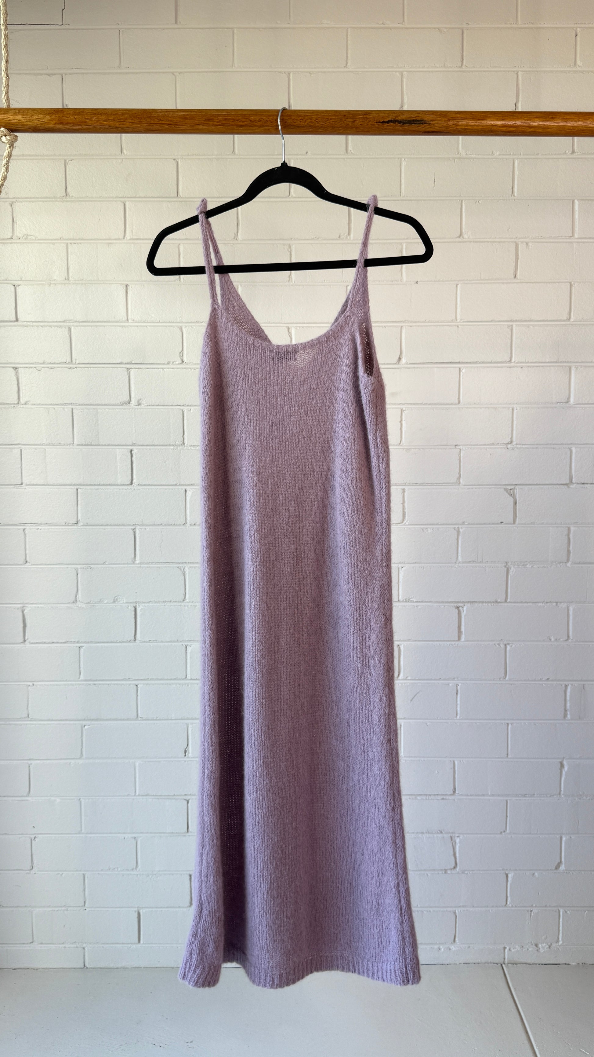 Elevated minimalism meets luxury fabrication in this Dries Van Noten alpaca wool slip dress. Designed in a soft lilac tone, it features fine shoulder straps, a flattering midi length, and a lightweight knit construction that drapes beautifully. Crafted in a premium alpaca-wool blend, this dress embodies understated elegance with modern edge.