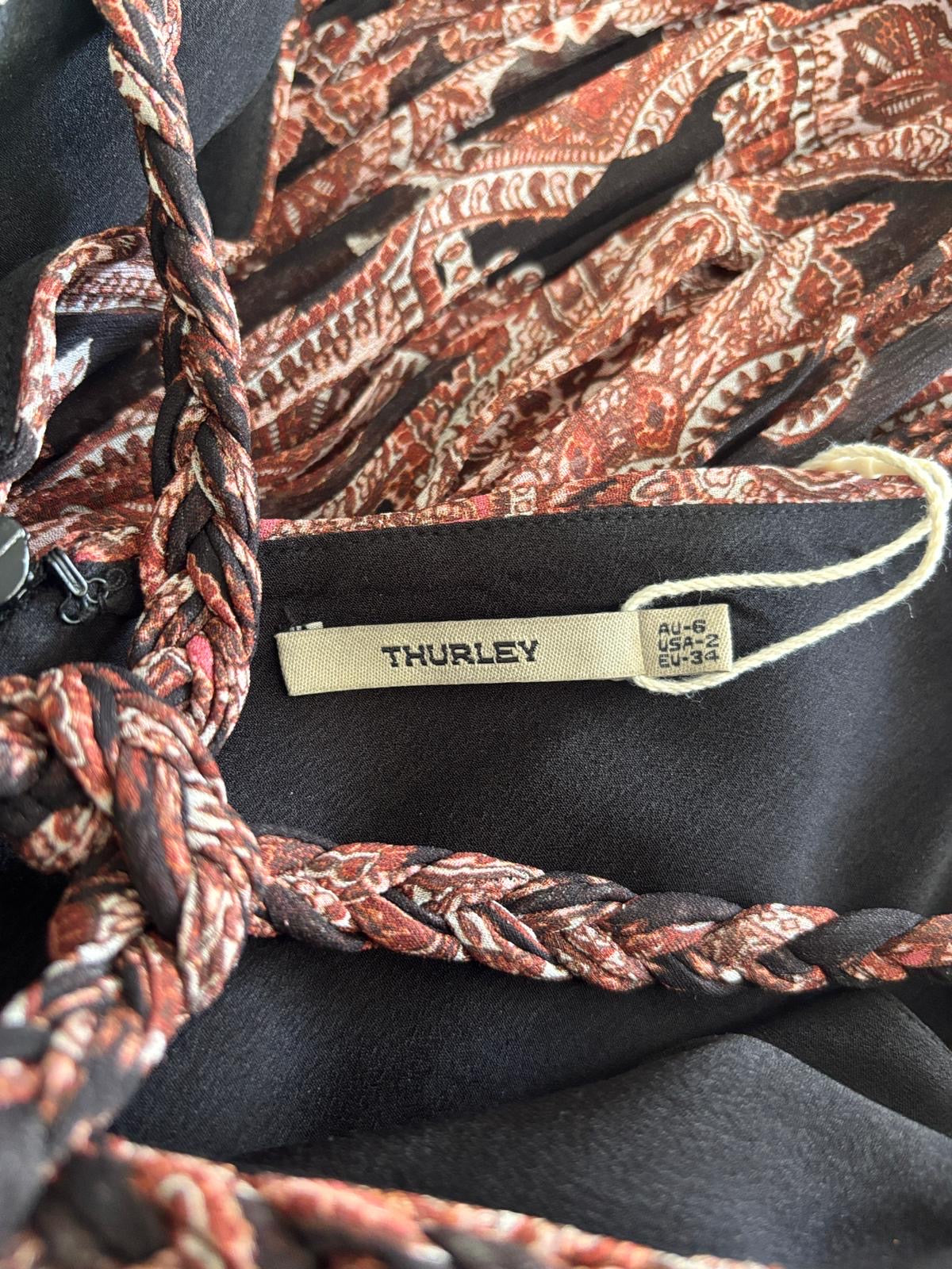 Beautiful Thurley mini dress featuring the label’s signature intricate detailing and bohemian-inspired print. This striking dress showcases a braided multi-strap neckline, dramatic cut-out bodice, and a flowing pleated mini skirt that creates movement and texture.