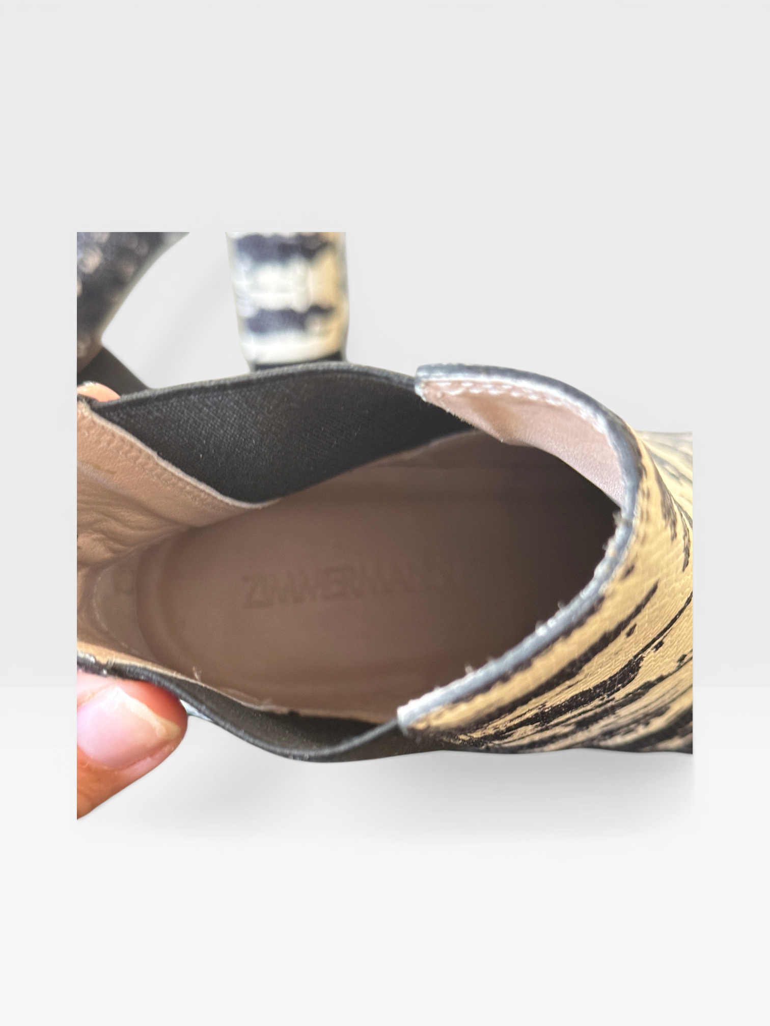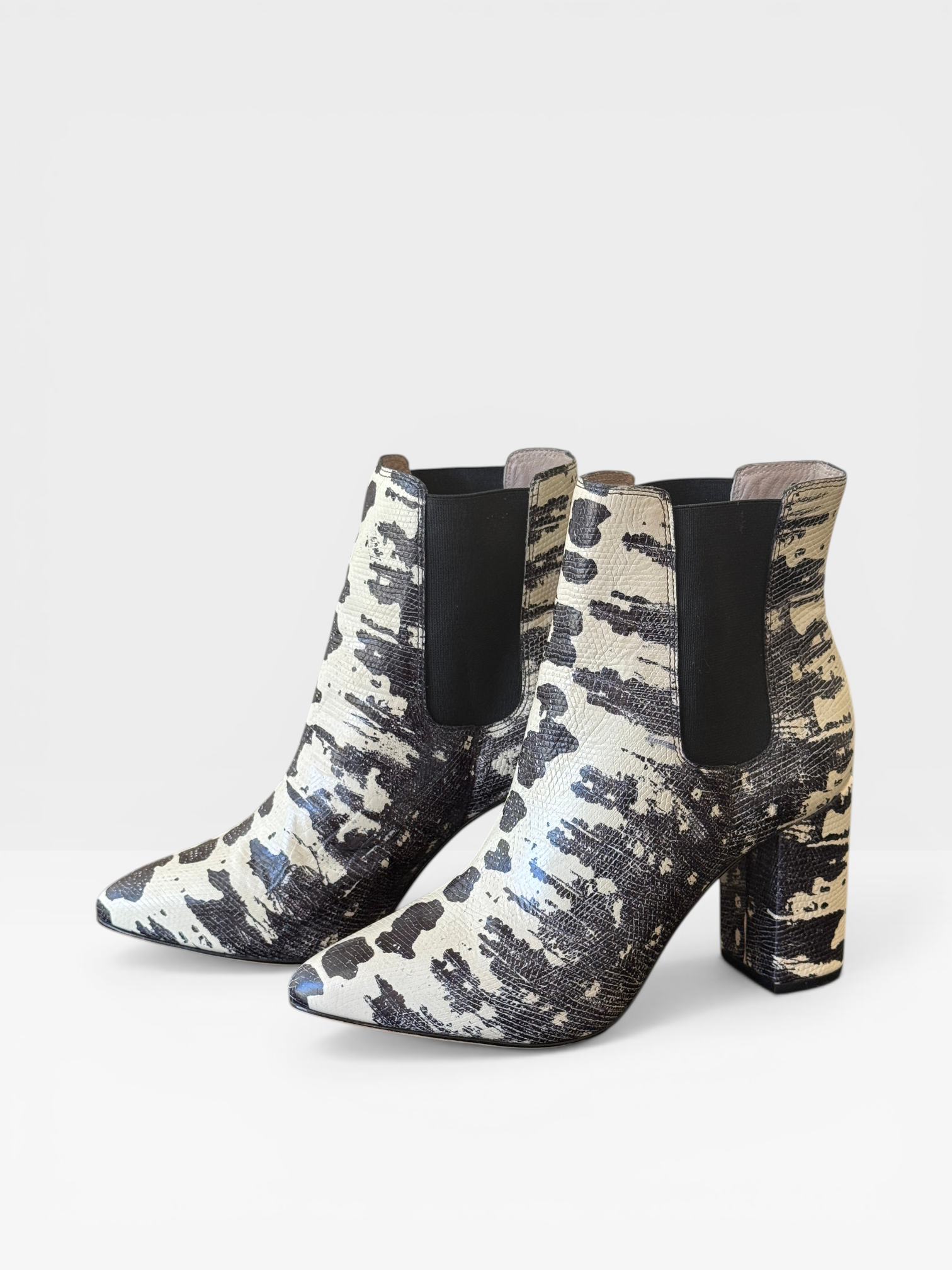 Zimmermann Black & White Animal Print Ankle Boots – Block Heel Chelsea Style- Size 37